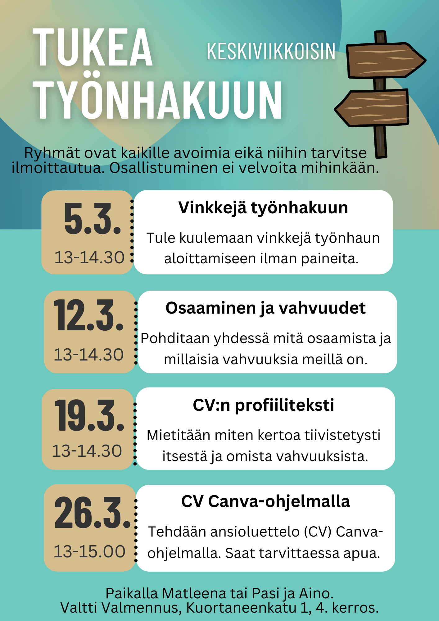 Keskiviikkoisin klo 13 alkaen Valtti Valmennuksessa