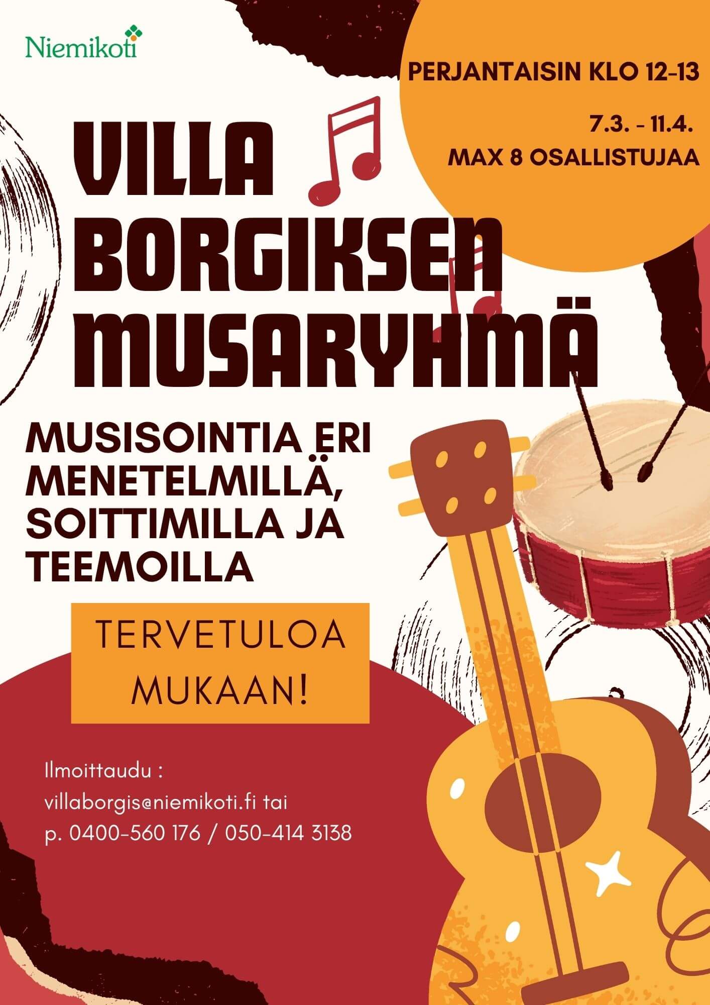 Villa Borgiksessa soitetaan perjantaisin, alkeisbändi soittaa Malmilla maanantaisin, ukulelea harjoitellaan Borgiksessa maanantaisin, pe 14.3. kokoontuu soittoryhmä Malmille tutustumaan yhdessä pianon, kitaran ja ukulelen soiton alkeisiin. Ja sen lisäksi vielä musiikin kuuntelu ja siitä keskustelu. On näitä!