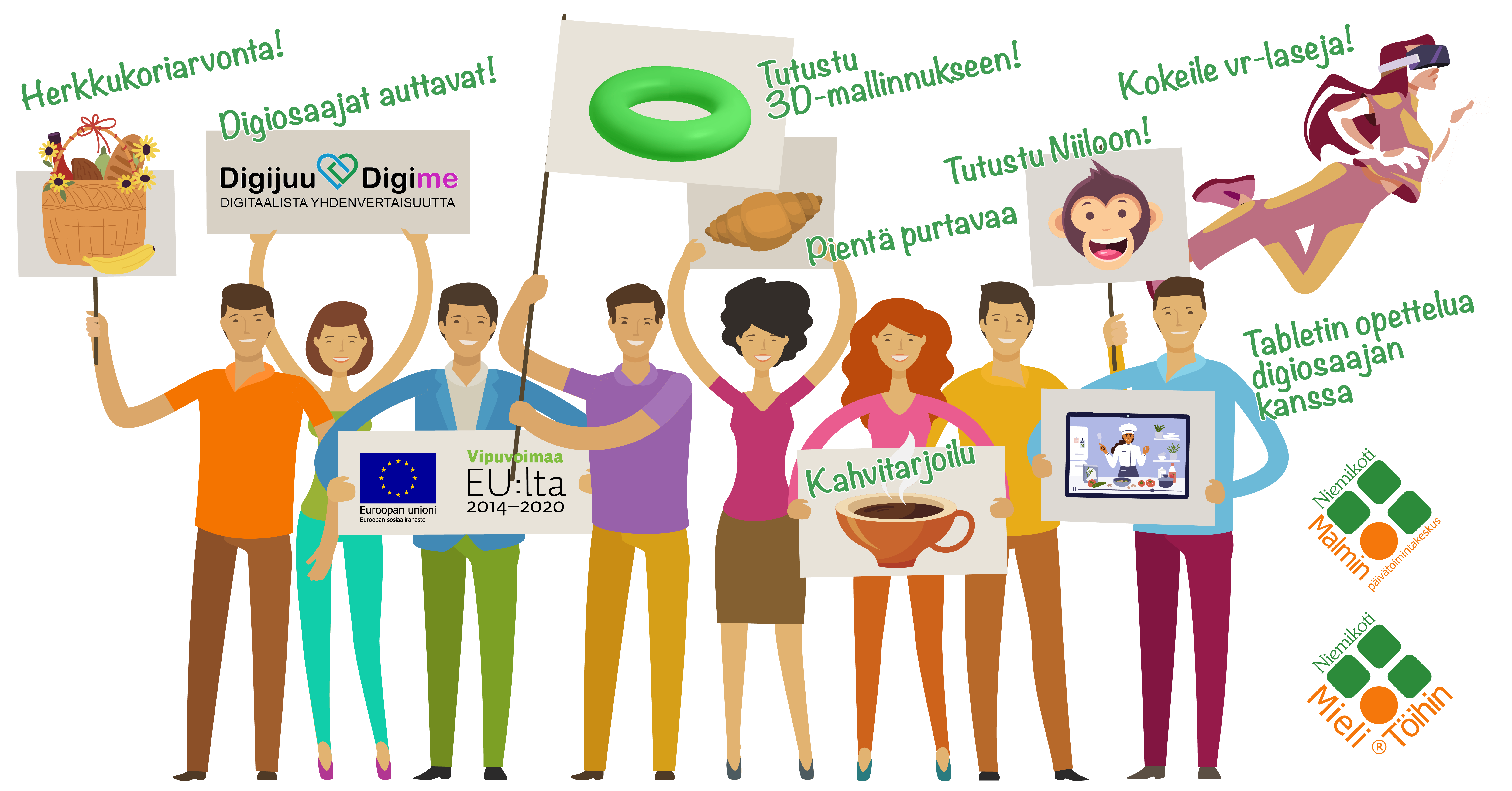 Mukana Digiriehassa: Malmin päivätoimintakeskus, Digijuu Digime -hanke, Niilo-sovellus ja Mieli Töihin -yksikkö
