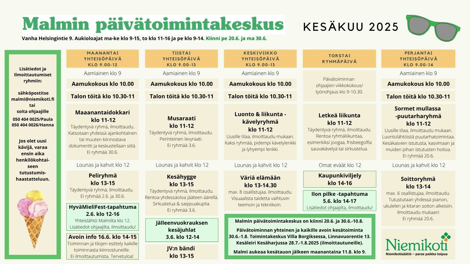 The new themes will be launched at an environmental event held on Thursday, April 16, 2026, at the Malmi Day Activity Centre. The event brings together service users, their close ones, and staff to explore the themes and participate in a diverse program.