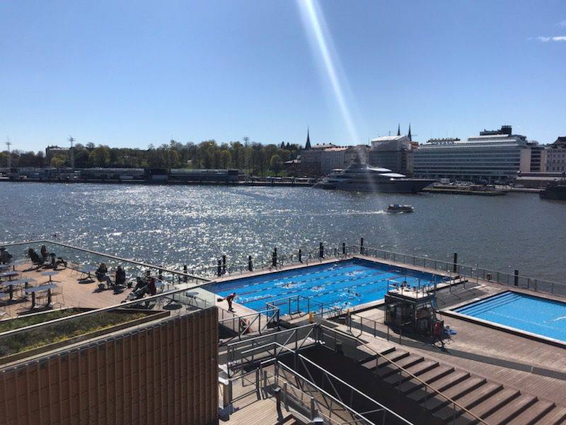 Malmin päivätoimintakeskuksen väki retkellä Allas sea poolilla. Altaan lämmin vesi, hyvä seura ja esteettömät näkymät merelle tekivät retkestä unohtamattoman.
