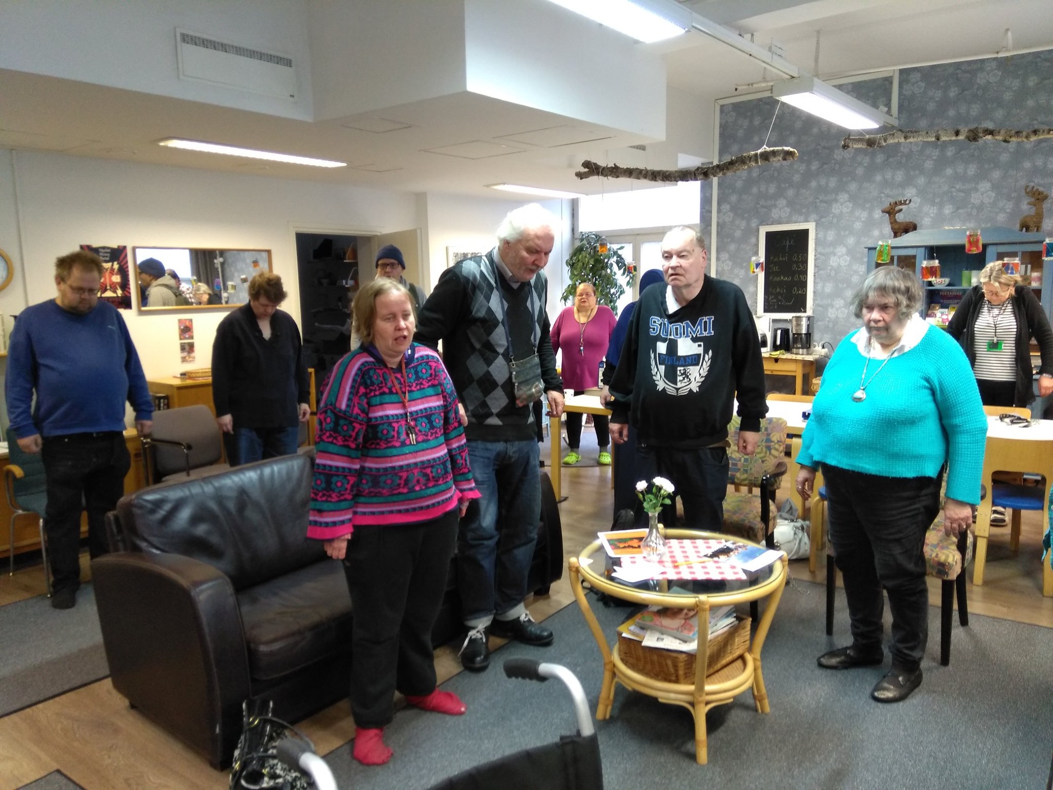 Osana porraspäivien ohjelmaa opiskelija Ida vetää taukojumppaa talon eri kerroksissa ja tänään oli ryhmätoiminnan vuoro. Aamukokouksen jälkeen oli tarjolla myös verenpaineen mittausta. Huomenna Ida kertoo terveys- ja hyvinvointiryhm