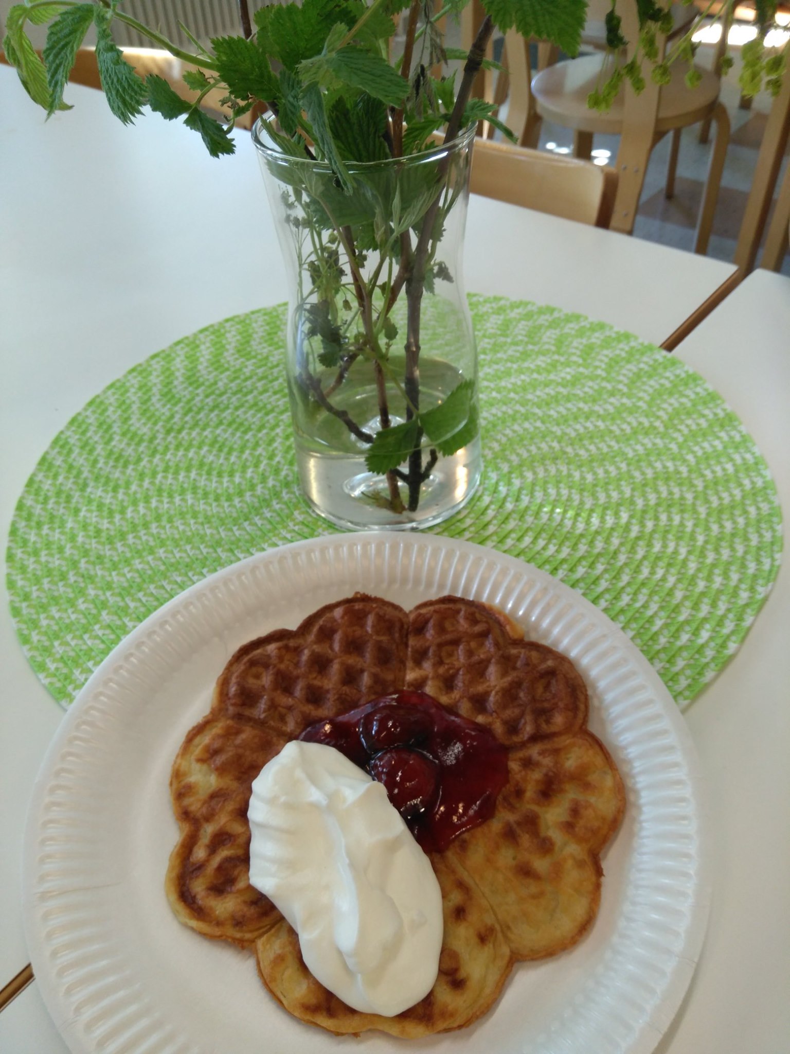 Täällä jo herkutellaan ja nautitaan upeasta säästä ja seurasta. Tervetuloa! Makkaraa ja vohveleita tarjolla edulliseen hintaan tänään klo 14 saakka. Samalla tuet mielenterveysyh
